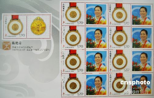 2008年8月14日,奧運舉重冠軍陳艷青“金牌運動員”即時版?zhèn)性化郵品在蘇州正式發(fā)行,受到市民的熱烈追捧。 中新社發(fā) 朱子寒 攝