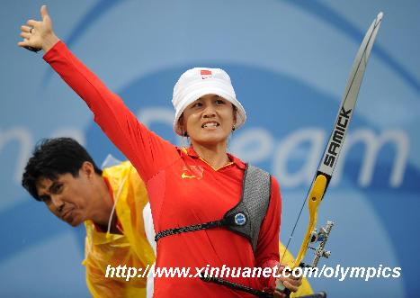 8月14日,在北京奧運(yùn)會(huì)射箭女子個(gè)人決賽中,中國(guó)選手張娟娟以110比109環(huán)戰(zhàn)勝韓國(guó)選手樸成賢,獲得冠軍。