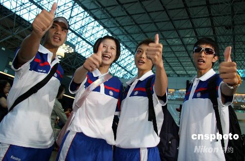 8月15日上午,中華臺(tái)北跆拳道代表隊(duì)搭乘兩岸周末包機(jī)飛赴北京,參加北京奧運(yùn)會(huì)。 中新社發(fā) 董會(huì)峰 攝