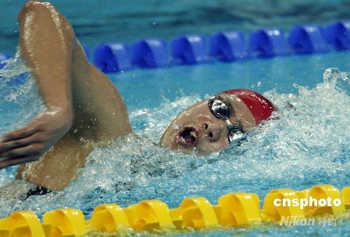 8月15日,在男子1500米自由泳預(yù)賽中,中國(guó)選手張琳以14分45秒84的成績(jī)闖入決賽。 中新社發(fā) 杜洋 攝