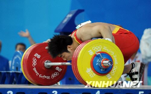 8月15日,中國(guó)選手陸永在比賽中。當(dāng)日,陸永在北京奧運(yùn)會(huì)舉重男子85公斤級(jí)決賽中以394公斤的總成績(jī)獲得金牌,并以總成績(jī)打破世界紀(jì)錄。新華社記者楊磊攝