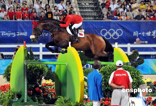八月十五日晚,奧運(yùn)馬術(shù)在香港沙田舉行場地障礙個人賽及團(tuán)體賽的第一輪資格賽。中國選手李振強(qiáng)與坐騎“長安金伯樂”奧運(yùn)馬術(shù)場地障礙賽上登場,F(xiàn)年四十歲來自廣東東莞的李振強(qiáng),是首位參加奧運(yùn)馬術(shù)障礙賽的中國人。中新社發(fā) 鄧慶樂 攝