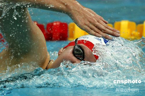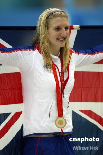 8月16日,在北京奧運(yùn)會女子800米自由泳決賽中,英國名將阿德林頓以8分14秒10奪取冠軍,打破由前美國名將埃文斯保持的塵封19年的世界紀(jì)錄。意大利選手菲利皮8分20秒23獲得銀牌,丹麥選手弗里斯以8分23秒03列第三。中國選手李玄旭8分26秒34排名第五。 中新社發(fā) 杜洋 攝