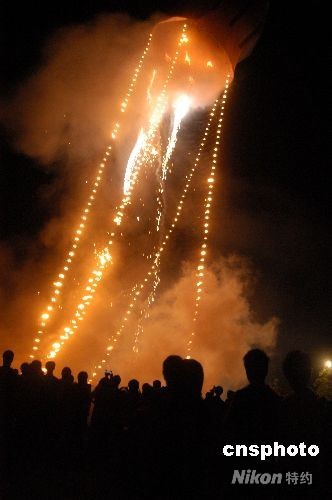 放孔明燈是海南群眾中元節(jié)的傳統(tǒng)習(xí)俗,萬寧市后安鎮(zhèn)下港村民以制作巨型孔明燈聞名。繼2007年“下港六號(hào)”孔明燈成功放飛之后,今年該村村民又打造了“下港七號(hào)”孔明燈。這個(gè)孔明燈直徑達(dá)21米,高28米,采用特制白紙1680張,重約500公斤,耗資5萬元制作而成。燈體上寫著“下港村民為中國加油”、“預(yù)祝奧運(yùn)取得圓滿成功”等字樣,中元節(jié)當(dāng)晚經(jīng)過兩次燃放終于成功升空。