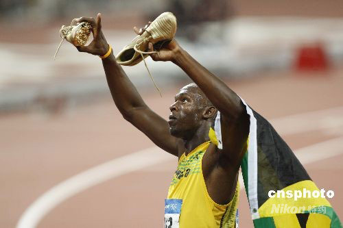 8月16日,牙買(mǎi)加“奇人”博爾特最終用實(shí)力證明他是世界上跑得最快的人。當(dāng)晚,他僅用了9秒69就跑到了100米跑道的終點(diǎn),并刷新了自己2個(gè)多月前創(chuàng)下的9秒72的世界紀(jì)錄,一舉奪得北京奧運(yùn)會(huì)男子100米冠軍。 中新社發(fā) 盛佳鵬 攝