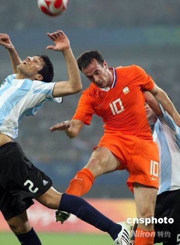 8月16日,北京奧運會男足阿根廷VS荷蘭的比賽在上海體育場進行。經(jīng)過120分鐘激戰(zhàn),荷蘭隊1:2不敵阿根廷無緣四強。中新社發(fā) 湯彥俊 攝