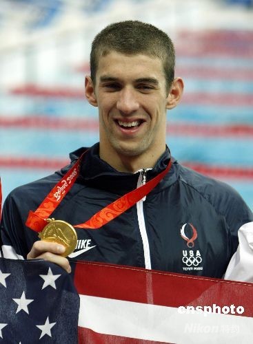8月17日,美國(guó)隊(duì)獲得北京奧運(yùn)會(huì)男子4乘100米混合泳接力冠軍,至此,23歲的美國(guó)游泳運(yùn)動(dòng)員菲爾普斯不僅用8金刷新了單屆奧運(yùn)會(huì)金牌紀(jì)錄,而且還將個(gè)人所有奧運(yùn)會(huì)的金牌總數(shù)提高到了14枚,達(dá)成了他人難以超越的“世界紀(jì)錄”。中新社發(fā) 杜洋 攝