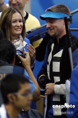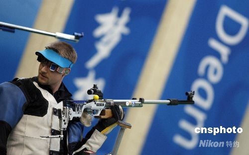 8月17日,男子50米步槍三種姿勢決賽在北京射擊館進(jìn)行,中國選手邱健奪得金牌。13:52分,男子步槍三姿第10輪邱健驚天逆轉(zhuǎn)得金牌。本來以為得到銀牌已經(jīng)是最好的結(jié)果,一直領(lǐng)先的美國選手埃蒙斯雖沒有像上一屆奧運(yùn)會(huì)一樣脫靶,但是他最后一槍居然只打出了4.4環(huán),埃蒙斯又一次與奧運(yùn)金牌夢想失之交臂。中新社發(fā) 盛佳鵬 攝