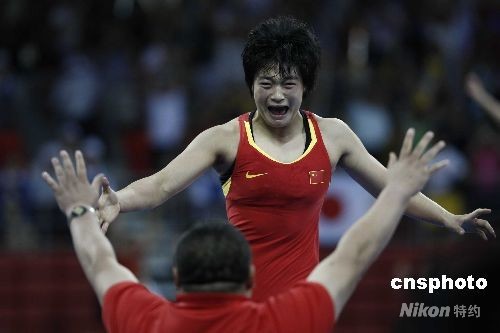 8月17日,北京奧運(yùn)會(huì)女子自由式摔跤72公斤級決賽中,中國選手王嬌以總分8比3擊敗保加利亞名將茲拉特娃,為中國奪得本屆奧運(yùn)會(huì)第30枚金牌。中新社發(fā) 盛佳鵬 攝
