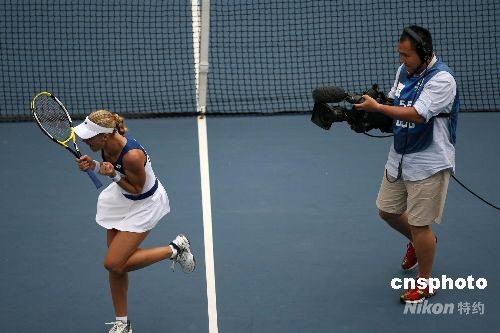 8月17日,在奧運(yùn)會(huì)網(wǎng)球女單決賽中,俄羅斯名將杰緬季耶娃2-1逆轉(zhuǎn)擊敗隊(duì)友薩芬娜,贏得冠軍。另一名俄羅斯選手茲沃納列娃奪得銅牌,中國(guó)選手李娜最終獲得女單第四名。中新社發(fā) 武仲林 攝