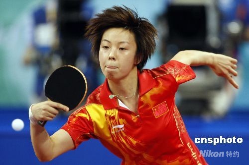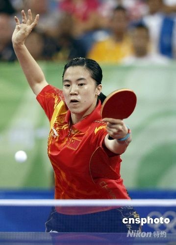 8月17日,北京奧運(yùn)會(huì)乒乓球女子團(tuán)體決賽在北京大學(xué)體育館舉行,中國(guó)隊(duì)獲得冠軍。中新社發(fā) 盛佳鵬 攝