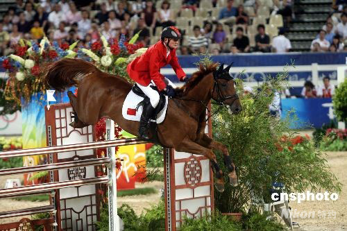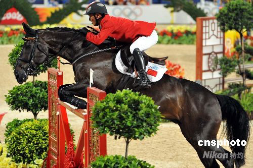 八月十七日晚,北京奧運馬術在香港沙田賽場舉行場地障礙賽團體賽決賽(第一輪)賽事及場地障礙個人賽(第二輪)資格賽。 中新社發(fā) 鄧慶樂 攝