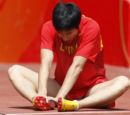 8月18日,奧運男子110米欄第一輪比賽中,中國名將劉翔因傷退出比賽!≡谫惽芭碇校瑒⑾栾@示他的腳傷還是有些問題,在第一槍選手搶跑之后,劉翔選擇退出了比賽,提前告別北京奧運會。