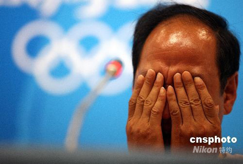 8月18日上午,在北京奧運(yùn)男子110米欄第1輪第6組比賽中,集十幾億人“寵愛”為一身的中國選手劉翔在第一次起跑后因腿傷遺憾退出比賽。賽后,教練孫海平說道劉翔的傷病與毅力,泣不成聲。中新社發(fā) 任晨鳴 攝