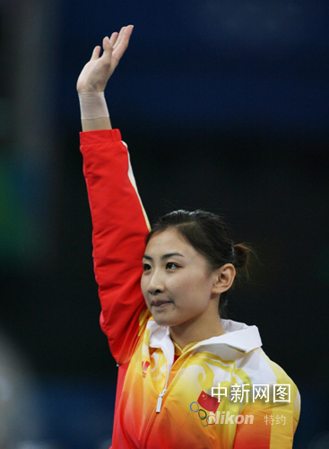 8月18日,中國(guó)選手何雯娜在北京奧運(yùn)會(huì)女子蹦床比賽中奪得冠軍。中新社記者 武仲林 攝