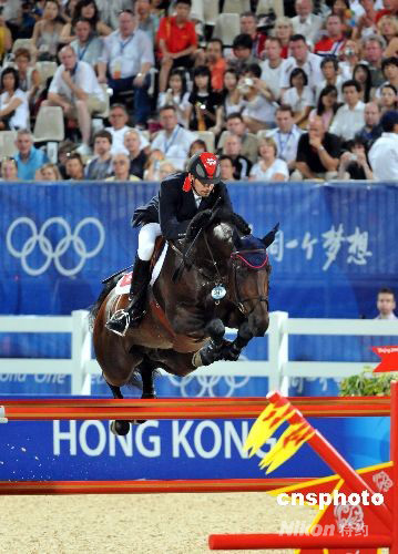 八月十八日晚,奧運(yùn)馬術(shù)場地障礙賽團(tuán)體賽決賽(第二輪)及個人賽(第三輪資格賽)在香港沙田賽場舉行,圖為唯一進(jìn)入個人賽(第三輪資格賽)的中國香港選手林立信策騎“城市”單騎應(yīng)戰(zhàn)。中新社發(fā) 鄧慶樂 攝