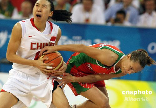 8月19日下午,北京奧運(yùn)會(huì)女子籃球四分之一淘汰賽在北京五棵松籃球館舉行,中國(guó)女籃以77比62擊敗白俄羅斯率先進(jìn)入前四強(qiáng),隊(duì)長(zhǎng)苗立杰砍下球隊(duì)全場(chǎng)最高的28分。 中新社發(fā) 任晨鳴 攝