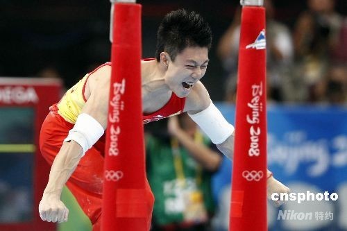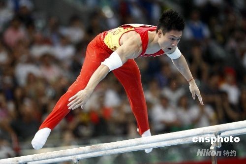 圖:中國(guó)選手李小鵬奪得男子雙杠冠軍(2)