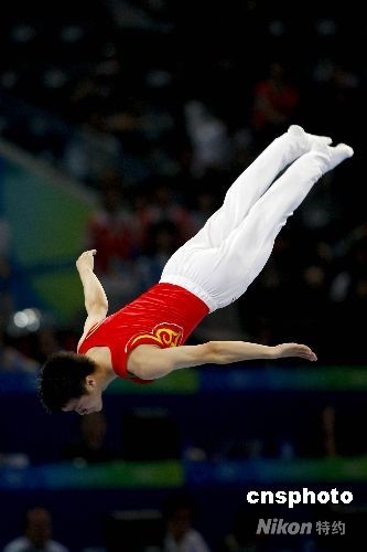 8月19日,中國(guó)選手陸春龍奪得北京奧運(yùn)會(huì)男子蹦床金牌。中新社發(fā) 盛佳鵬 攝