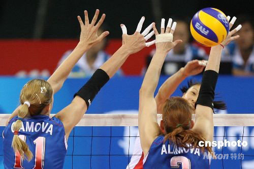 8月19日晚,衛(wèi)冕冠軍中國(guó)女排在北京奧運(yùn)會(huì)四分之一決賽中,以3:0戰(zhàn)勝俄羅斯女排,成功晉級(jí)四強(qiáng)。 中新社發(fā) 武仲林 攝