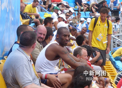 那天早上,我去VIP區(qū)協(xié)調(diào)工作,與國(guó)際排聯(lián)的兩個(gè)官員交流,并沒(méi)有想到會(huì)有什么特別的。應(yīng)他們的要求,我來(lái)到后排,與他們的上級(jí)主管溝通。這時(shí)我抬起頭,無(wú)意間看見(jiàn)一位身穿紅色T恤的“黑哥們”坐在眼前。我瞬時(shí)反應(yīng)過(guò)來(lái)——是NBA巨星科比!沒(méi)錯(cuò),就是他!