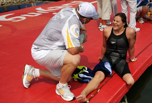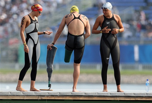 中新網(wǎng)8月20日電 北京奧運會女子10公里馬拉松游泳比賽今天上午舉行。比賽中,一位特殊的運動員贏得了全場觀眾熱烈的掌聲,她就是24歲的南非殘疾人選手納塔莉·杜托伊特——同時參加北京奧運會、北京殘奧會的運動員。