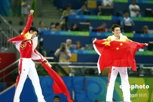 8月19日,中國選手陸春龍奪得北京奧運(yùn)會男子蹦床金牌。中新社發(fā) 盛佳鵬 攝