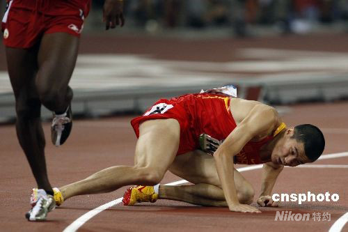 8月20日晚,在國(guó)家體育場(chǎng)鳥巢進(jìn)行的北京奧運(yùn)會(huì)男子110米欄半決賽中,中國(guó)選手史冬鵬發(fā)揮欠佳,僅跑出13秒42,位列小組第五無(wú)緣決賽。 中新社發(fā) 盛佳鵬 攝