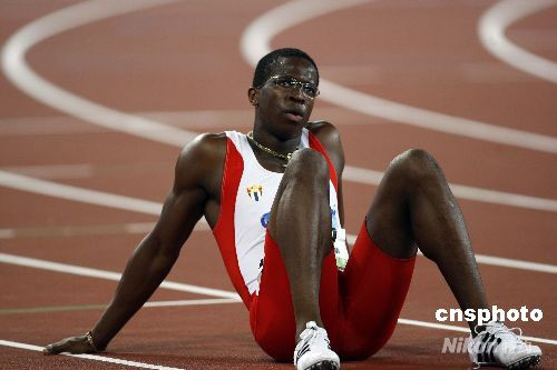8月20日晚,在國家體育場鳥巢進行的北京奧運會男子110米欄半決賽中,世界紀錄保持者古巴選手羅伯斯(中)在第一小組比賽中以13秒12獲得第一,順利晉級決賽。中國選手史冬鵬僅跑出13秒42,位列小組第五,無緣決賽。中新社發(fā) 盛佳鵬 攝