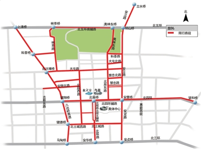 限行路段:奧林東路由奧林東橋(含)向南,經(jīng)奧林東路至奧林東路南口(含)雙向。