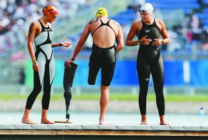 昨天的順義奧林匹克公園,冠軍、亞軍、季軍依次游過終點(diǎn),不過觀眾們?nèi)栽诘却粋(gè)人。在所有人眼中,她也是這場比賽的英雄。當(dāng)南非選手納塔莉·杜托伊特第十六個(gè)游過終點(diǎn),所有觀眾起立為她歡呼。作為奧林匹克史上第一個(gè)截肢運(yùn)動(dòng)員,獲得冠軍的俄羅斯選手拉里莎認(rèn)為她也值得獲一枚獎(jiǎng)牌,“并不是精神意義的,而是競技意義上的。”
