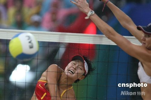 8月21日,中國選手田佳、王潔在奧運沙灘排球決賽中以0 :2負(fù)于美國選手克麗·沃爾什、米絲蒂·梅—特雷納,獲得亞軍。中新社發(fā) 武仲林 攝