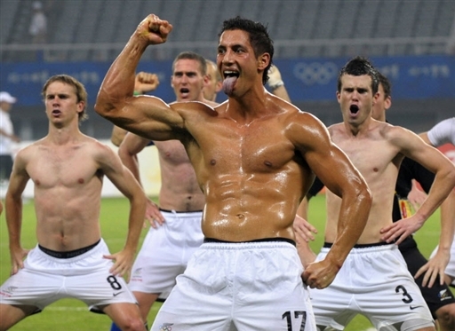 比利時(shí)國奧隊(duì)員脫去上衣大跳土著舞,男色時(shí)代“秀”身材。