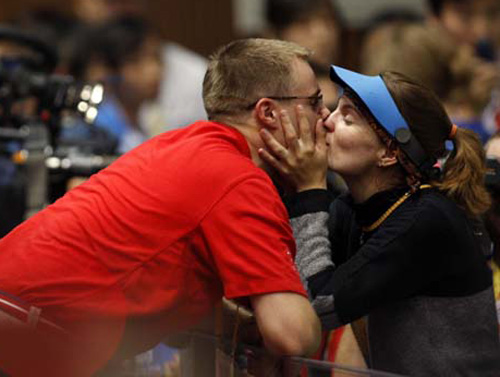 埃蒙斯夫婦深情熱吻毫不避諱攝影師的閃光燈。