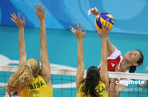 8月21日,中國女排在北京奧運會女排半決賽中以0:3負(fù)于巴西隊,無緣決賽。中新社發(fā) 武仲林 攝