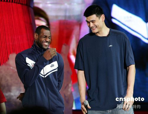 圖:姚明、詹姆斯北京奧運文化廣場談笑風生