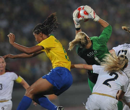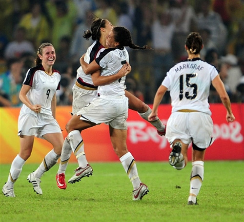8月21日,在北京奧運(yùn)會(huì)女子足球決賽中,衛(wèi)冕冠軍美國(guó)隊(duì)?wèi){借在加時(shí)賽第5分鐘的進(jìn)球,1-0小勝巴西隊(duì),奪得北京奧運(yùn)會(huì)女足金牌。