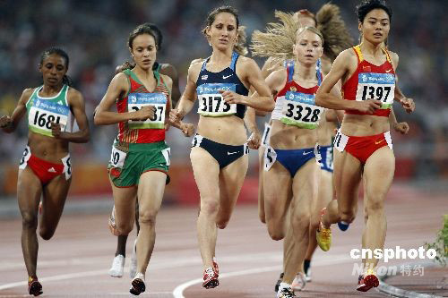 8月21日,北京奧運(yùn)會(huì)田徑比賽女子1500米預(yù)賽在國家體育場(chǎng)進(jìn)行,中國選手劉青(右一)位列小組第9名,無緣決賽。中新社發(fā) 盛佳鵬 攝