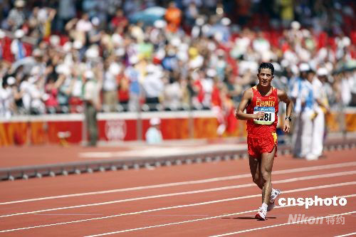 8月22日上午,北京奧運(yùn)男子50公里競走比賽中,意大利選手亞歷克斯-施瓦策以3小時(shí)37分09秒奪得冠軍。中國選手李建波雖奮力追趕,但還是無緣獎(jiǎng)牌。 中新社發(fā) 盛佳鵬 攝