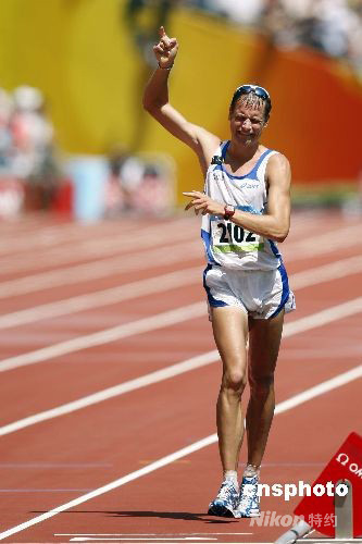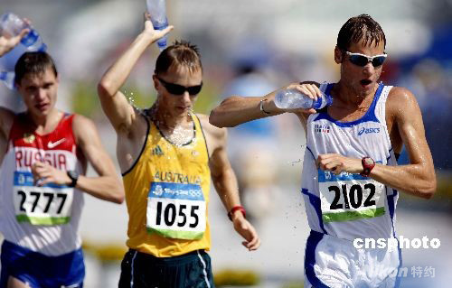 8月22日,北京奧運(yùn)會(huì)田徑比賽第八日,在男子50公里競(jìng)走比賽中,意大利選手亞歷克斯-施瓦策以3小時(shí)37分09秒奪得冠軍。 中新社發(fā) 盛佳鵬 攝