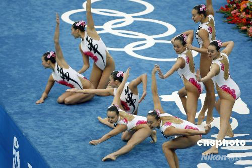 圖:中國姑娘暫列花樣游泳集體技術自選第三