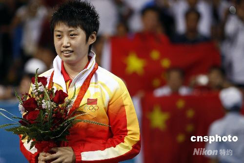 8月22日晚,在北京大學(xué)體育館進(jìn)行的乒乓球女子單打銅牌爭(zhēng)奪戰(zhàn)中,中國(guó)選手郭躍以4-2戰(zhàn)勝新加坡選手李佳薇,為中國(guó)乒乓球代表隊(duì)贏得一枚銅牌。 中新社發(fā) 盛佳鵬 攝