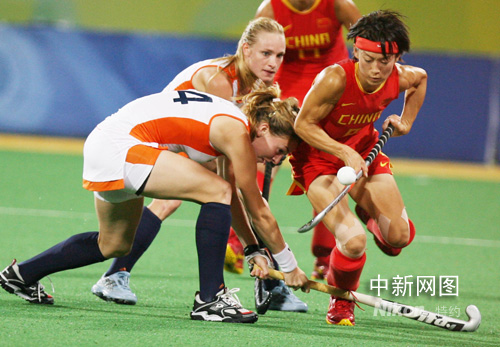 8月23日,中國女曲在北京奧運會曲棍球決賽中0:2負(fù)于荷蘭隊,奪得亞軍,取得歷史性突破。中新社記者 武仲林 攝
