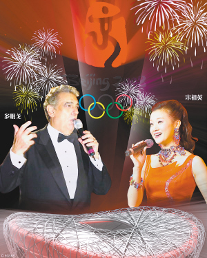 例如,宋祖英與世界著名男高音多明戈的合唱就是中西合璧的一個(gè)組合。另外,與開幕式上劉歡、莎拉·布萊曼兩人站在“藍(lán)色星球”上靜靜地演唱氛圍不同,宋祖英和多明戈演唱時(shí)將會(huì)有非常炫彩的伴舞,初定的伴舞風(fēng)格是云南舞。此外,還會(huì)有很多與高科技相結(jié)合的嶄新音樂形式也將給觀眾帶來視聽享受。