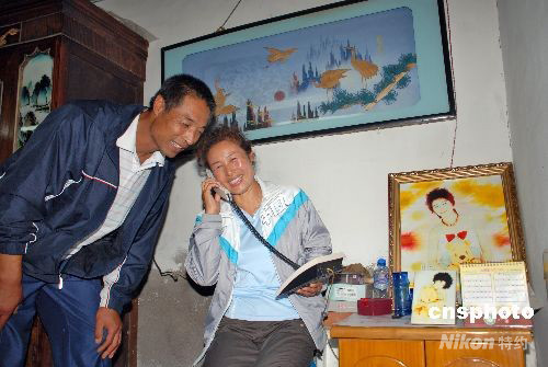 中國女子曲棍球隊(duì)在29屆北京奧運(yùn)會(huì)奪得銀牌,賽后趙玉雕的父母在家鄉(xiāng)打電話給女兒。中新社發(fā) 谷進(jìn) 攝