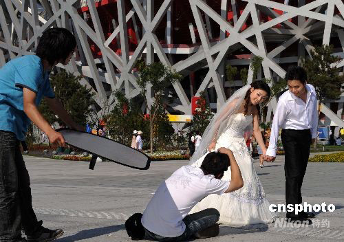 北京新人徜徉奧林匹克公園。