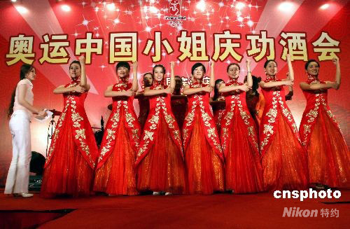 8月22日晚,“奧運(yùn)中國(guó)小姐慶功酒會(huì)”在北京國(guó)賓飯店舉行。北京奧運(yùn)會(huì)開(kāi)閉幕式運(yùn)營(yíng)中心主任王寧發(fā)表講話,高度贊揚(yáng)了女孩們?yōu)殚_(kāi)幕式演出作出的貢獻(xiàn)。隨后,這些美麗的使者在晚宴的T臺(tái)上進(jìn)行了精彩的文藝演出,展現(xiàn)了她們多才多藝的一面。中新社發(fā) 王磊 攝