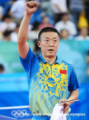 馬琳在北京奧運(yùn)會(huì)乒乓球男子單打半決賽中以4比2戰(zhàn)勝隊(duì)友王勵(lì)勤。新華社記者徐家軍攝