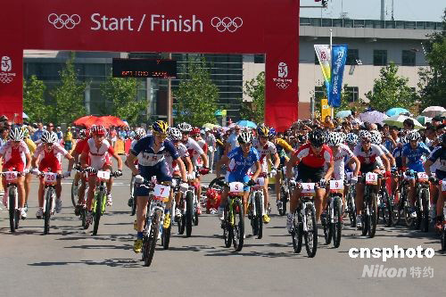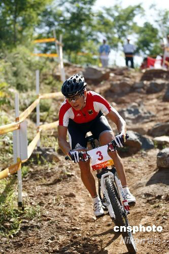 8月23日,北京奧運(yùn)會自行車山地分項(xiàng)女子越野賽在北京老山山地自行車場舉行。德國選手扎比內(nèi)·施皮茨一路保持領(lǐng)先,最終以1小時(shí)45分11秒的成績順利摘金。波蘭選手馬婭·沃什佐夫斯卡獲得銀牌,俄羅斯選手伊琳娜·卡連季耶娃獲得銅牌。中國選手任成遠(yuǎn)獲得了第5名,另一位中國選手劉穎最終獲得第12名。中新社發(fā) 盛佳鵬 攝