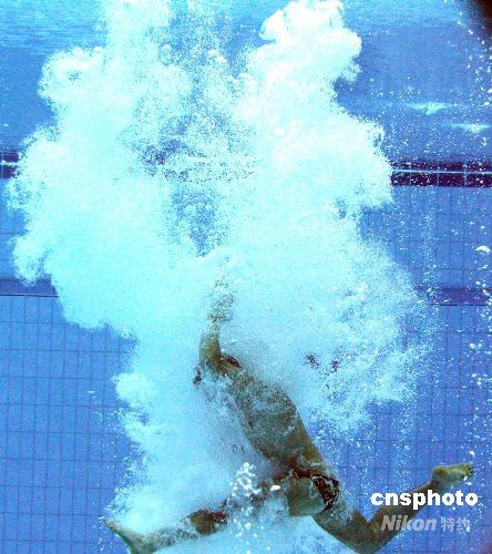 8月23日,北京奧運(yùn)會(huì)男子10米跳臺跳水半決賽在國家游泳中心“水立方”舉行。圖為精彩瞬間。中新社發(fā) 武仲林 攝